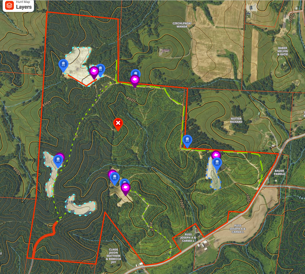 Located about 8 miles west of Oakhill, Ohio, in my opinion this property is the best one we have ever offered. Half of the property was clear-cut about 8 years ago and has grown up into some fantastic bedding cover. The other half is predominately pines that could be harvested. The property has fantastic access with three different access points off of St. Rt. 279. Other highlights – 5 food plots totaling 26 acres. Biggest plot is 10 acres and has a small pond 6 1000# feeders (each plot has a feeder) 6 elevated blinds on the property, 4 are brand new 360 blinds on 4 of the plots. New access roads throughout property Could easily be subdivided into two tracts for different buyers To our knowledge, this property was not affected by the 2025 EHD outbreak that hit southern Ohio and has not been hunted in two seasons. It is ready to go for its new owner!